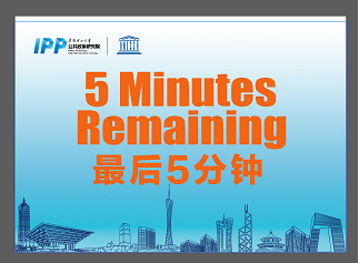 再則,有些會議需要嘉賓限時發言,當嘉賓發言時間快到,比如還剩5分鐘時,就會舉牌提示;時間結束也會提示,這些指示語該如何翻譯呢?